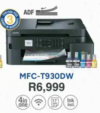 This special is available in various stores, view all products to get the cheapest Brother MFC-T930DW Ink Tank Printer. If you'd like to find out whether this product has a bigger discount in another store, check the category 'Electronics'. You may also find these specials interesting: Brother DCP-T830DW Ink Tank Printer, Brother DCP-T530DW Ink Tank Printer & Brother DCP-T430 Ink Tank Printer.