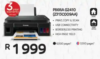 Computer Mania offers a wide collection of products, besides the Canon PIXMA G2410 Printer. Keep an eye on the weekly Computer Mania catalogue to find the best specials and promotions. Besides Canon PIXMA G2410 Printer, you can also find the following offers: Canon PIXMA G4470 Printer, Canon PIXMA G3410 Printer & Canon PIXMA G2410 MegaTank Printer.