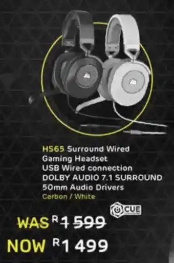 Computer Mania offers a wide collection of products, besides the Corsair HS65 Surround Wired Gaming Headset. Keep an eye on the weekly Computer Mania catalogue to find the best specials and promotions. Besides Corsair HS65 Surround Wired Gaming Headset, you can also find the following offers: Corsair HS55 Stereo Wired Gaming Headset, Corsair HS80 RGB USB Wired Gaming Headset & Corsair HS35 v2 Gaming Headset.