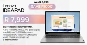 This special is available in various stores, view all products to get the cheapest Lenovo IdeaPad 1. If you'd like to find out whether this product has a bigger discount in another store, check the category 'Electronics'. You may also find these specials interesting: Lenovo IdeaPad 5i 2-in-1, Lenovo IdeaPad 5i 2-in-1 & Lenovo Ideapad 1 Ryzen 3 850024122.