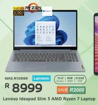 This special is available in various stores, view all products to get the cheapest Lenovo Ideapad Slim 3 AMD Ryzen 7 Laptop. If you'd like to find out whether this product has a bigger discount in another store, check the category 'Electronics'. You may also find these specials interesting: Lenovo IdeaPad 3 AMD Ryzen 7 Laptop, Lenovo IdeaPad 3 AMD Ryzen 7 Laptop & Lenovo 15.6" Ryzen 3 IdeaPad Laptop.