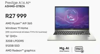 Msi Prestige A16 AI+ promotion at Computer Mania