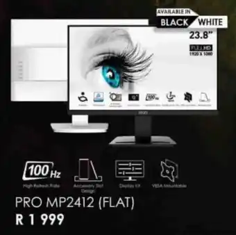 This special is available in various stores, view all products to get the cheapest Msi Pro MP2412 Flat. If you'd like to find out whether this product has a bigger discount in another store, check the category 'Electronics'. You may also find these specials interesting: Msi G255F Flat, MSI Perfect Edge Pro MP251 Office Montior & MSI PRO Business & Productivity Monitor.