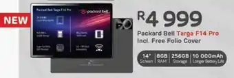 This Packard Bell Targa F14 Pro Incl. Free Folio Cover is currently available as part of a special promotion at Computer Mania. Be sure to check the current promotions filled with competitive prices and deals. You can order Packard Bell Targa F14 Pro Incl. Free Folio Cover online via Computer Mania website or get it at the best available price. Cataloguespecials.co.za collects the most relevant Packard Bell Targa F14 Pro Incl. Free Folio Cover offers and specials for you. Want to be notified first? Click the bell icon to receive a free alert when the product is part of a new promotion or available again.