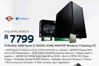 The PCBuilder AMD Ryzen 5 3400G Home Master Windows 11 Desktop PC is now available with a discount at Computer Mania. On this page, you’ll find everything about the current price, promotion conditions, and how long the offer is valid. Also explore other offers and promotions for PCBuilder AMD Ryzen 5 3400G Home Master Windows 11 Desktop PC to make a smart and cost-effective choice.
