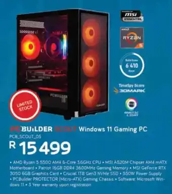 This special is available in various stores, view all products to get the cheapest PCBuilder Scout Windows 11 Gaming PC. If you'd like to find out whether this product has a bigger discount in another store, check the category 'Electronics'. You may also find these specials interesting: PCBuilder SCOUT Windows 11 Gaming PC, SCOUT Windows 11 Gaming PC & PCBuilder Specialist 06 Windows 11 Gaming PC.