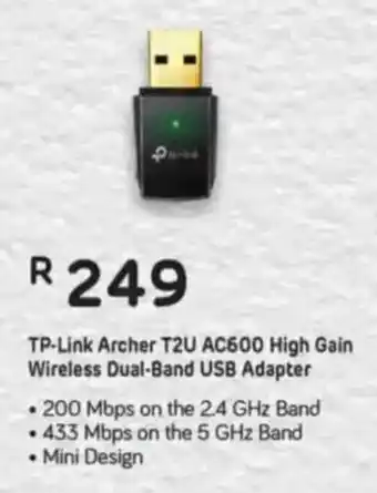 Computer Mania offers a wide collection of products, besides the TP-Link Archer T2U AC600 High Gain Wireless Dual-Band USB Adapter. Keep an eye on the weekly Computer Mania catalogue to find the best specials and promotions. Besides TP-Link Archer T2U AC600 High Gain Wireless Dual-Band USB Adapter, you can also find the following offers: Tp-link Archer T2U Wireless Dual Band USB Adapter, Archer T2U Wireless Dual Band USB Adapter (AC600) & Mercusys AC650 High-Gain Wireless Dual-Band USB Adapter.
