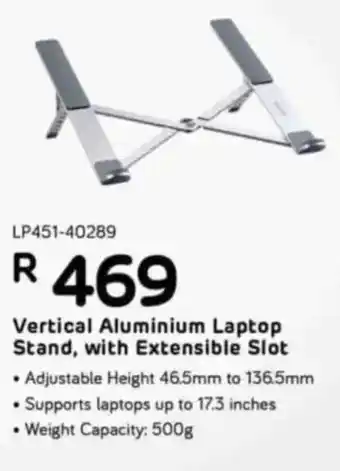 UGreen Vertical Aluminium Laptop Stand, with Extensible Slot promotion at Computer Mania