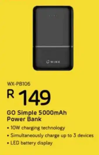 This special is available in various stores, view all products to get the cheapest Winx GO Simple 5000mAh Power Bank. If you'd like to find out whether this product has a bigger discount in another store, check the category 'Electronics'. You may also find these specials interesting: Winx GO Simple 10000mAh Power Bank, Winx GO Fast 2 30000mAh Power Bank PD20 & Winx GO Fast 2 20000mAh PD 20W Power Bank.