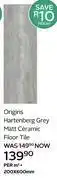 Now on special at CTM: Origins Hartenberg Grey Matt Ceramic Floor Tile 200 x 600mm-Per Sqm ✅ Valid from 15-10 to 4-01.