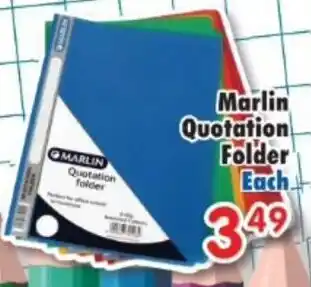 The Marlin Quotation Folder is available this week at DB Cash And Carry as part of a special promotion. On this page, you’ll find everything about the promotional price, terms, and current specials. Browse related promotions and offers for Marlin Quotation Folder to make sure you don’t miss out.