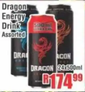 This special is available in various stores, view all products to get the cheapest Dragon Energy Drink Assorted. If you'd like to find out whether this product has a bigger discount in another store, check the category 'Wholesale'. You may also find these specials interesting: Energade Energy Drink Assorted, Switch Energy Drink Assorted & Power Play Energy Drink Assorted.