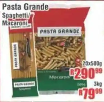 This special is available in various stores, view all products to get the cheapest Pasta Grande Spaghetti/ Macaroni. If you'd like to find out whether this product has a bigger discount in another store, check the category 'Wholesale'. You may also find these specials interesting: Pasta Grande Macaroni or Spaghetti, PASTA GRANDÉ Spaghetti or Macaroni & Pasta Grande Macaroni Or Spaghetti-For 3 x 500g.