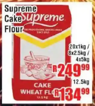 This special is available in various stores, view all products to get the cheapest Supreme Cake Flour. If you'd like to find out whether this product has a bigger discount in another store, check the category 'Wholesale'. You may also find these specials interesting: Supreme Cake Flour 12.5kg, Sasko Cake Flour & Golden cloud cake wheat flour/ sasko cake flour.