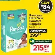 Pampers Ultra Skin Comfort Nappies Sizes 1-6-Per Pack promotion at Dis-Chem