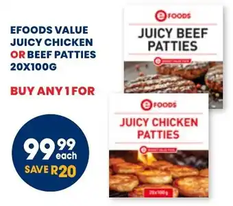 Efoods value juicy chicken or beef patties Discount at Econo Foods