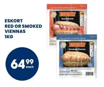 This special is available in various stores, view all products to get the cheapest Eskort red or smoked viennas. If you'd like to find out whether this product has a bigger discount in another store, check the category 'Grocery stores'. You may also find these specials interesting: Eskort Red or Smoked Viennas, Eskort Red or Smoked Viennas & ESKORT RED/SMOKED VIENNAS.