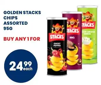 This special is available in various stores, view all products to get the cheapest Golden stacks chips assorted. If you'd like to find out whether this product has a bigger discount in another store, check the category 'Grocery stores'. You may also find these specials interesting: Chips Assorted, Pringles Chips Assorted & Simba chips assorted.