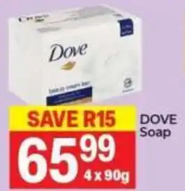 This special is available in various stores, view all products to get the cheapest Dove Soap. If you'd like to find out whether this product has a bigger discount in another store, check the category 'Grocery stores'. You may also find these specials interesting: DOVE Soap, Dove Soap Assorted 4 x 90g Per Pack & Dove Bath Soap.