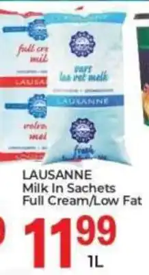 LAUSANNE Milk In Sachets Full Cream/ Low Fat promotion at Elite Power Trade Cash & Carry