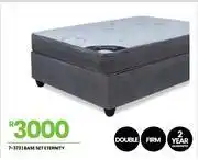 This special is available in various stores, view all products to get the cheapest Eternity Double Base Set (Firm) 7-373. If you'd like to find out whether this product has a bigger discount in another store, check the category 'Home furniture'. You may also find these specials interesting: Naples Queen Base Set (Firm) 7-445, Catania Queen Base Set (Extra Firm) 7-424 & Vital Rest Queen Base Set (Firm) 7-443.