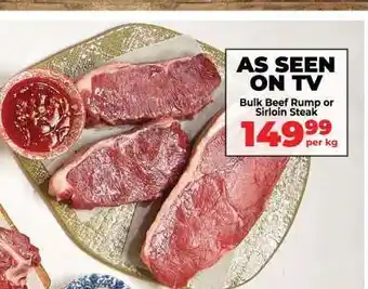 The Bulk Beef Rump or Sirloin Steak is now available with a discount at Food Lover's Market. On this page, you’ll find everything about the current price, promotion conditions, and how long the offer is valid. Also explore other offers and promotions for Bulk Beef Rump or Sirloin Steak to make a smart and cost-effective choice.