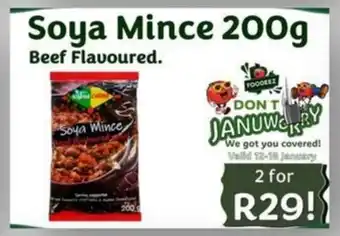 This special is available in various stores, view all products to get the cheapest Soya Mince Beef Flavoured. If you'd like to find out whether this product has a bigger discount in another store, check the category 'Grocery stores'. You may also find these specials interesting: TC Nyama Beef Flavoured Soya Mince, GOGO'S KITCHEN CHICKEN FLAVOURED SOYA MINCE 200g & Beef mince.