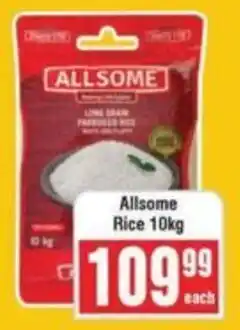 This special is available in various stores, view all products to get the cheapest Allsome Rice. If you'd like to find out whether this product has a bigger discount in another store, check the category 'Grocery stores'. You may also find these specials interesting: Allsome Rice, Allsome Rice & Allsome Rice.