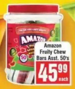 This special is available in various stores, view all products to get the cheapest Amazon Fruity Chew Bars. If you'd like to find out whether this product has a bigger discount in another store, check the category 'Grocery stores'. You may also find these specials interesting: Amazon Fruity Bars Assorted, Halls thick & fruity & Clover Fruity Snack.