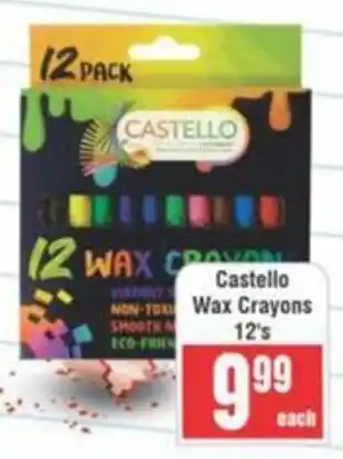 This special is available in various stores, view all products to get the cheapest Castello Wax Crayons. If you'd like to find out whether this product has a bigger discount in another store, check the category 'Grocery stores'. You may also find these specials interesting: Castello Jumbo Wax Ice Crayons, Wax Crayons & Castello Rectractable Crayons.