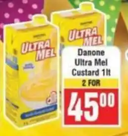 This special is available in various stores, view all products to get the cheapest Danone Ultra Mel Custard. If you'd like to find out whether this product has a bigger discount in another store, check the category 'Grocery stores'. You may also find these specials interesting: Danone Ultra Mel Vanilla Custard, Danone ultra mel flavoured custard & Danone Ultra Mel Vanilla Flavoured Custard.