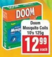 This special is available in various stores, view all products to get the cheapest Doom Mosquito Coils. If you'd like to find out whether this product has a bigger discount in another store, check the category 'Grocery stores'. You may also find these specials interesting: Doom Mosquito Coils, Doom Mosquito Coil & Doom Mosquito Coil.