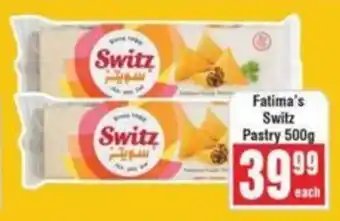 Frontline offers a wide collection of products, besides the Fatima's Switz Pastry. Keep an eye on the weekly Frontline catalogue to find the best specials and promotions. Besides Fatima's Switz Pastry, you can also find the following offers: Fatima's Spring Roll Pastry, Fatima's Favourite Foods Puff Pastry & Fatima's Samoosa's.