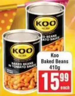 This special is available in various stores, view all products to get the cheapest Koo Baked Beans. If you'd like to find out whether this product has a bigger discount in another store, check the category 'Grocery stores'. You may also find these specials interesting: KOO Baked Beans, Koo Baked Beans & KOO Baked Beans.