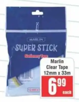 This special is available in various stores, view all products to get the cheapest Marlin Clear Tape. If you'd like to find out whether this product has a bigger discount in another store, check the category 'Grocery stores'. You may also find these specials interesting: Marlin Clear Tape, Marlin Clear Tape & Marlin Clear Tape.
