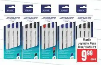 This special is available in various stores, view all products to get the cheapest Marlin Joymate Pens Blue/Black. If you'd like to find out whether this product has a bigger discount in another store, check the category 'Grocery stores'. You may also find these specials interesting: Marlin Joymate Pens Blue/ Black, Marlin Joymate Pens & Marlin Joymate Pens.