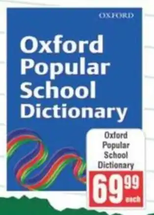 This special is available in various stores, view all products to get the cheapest Oxford Popular School Dictionary. If you'd like to find out whether this product has a bigger discount in another store, check the category 'Grocery stores'. You may also find these specials interesting: Oxford Popular School Dictionary, Oxford Primary School Dictionary & Oxford SA School Dictionary.