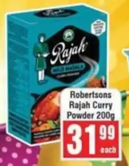 This special is available in various stores, view all products to get the cheapest Robertsons Rajah Curry Powder. If you'd like to find out whether this product has a bigger discount in another store, check the category 'Grocery stores'. You may also find these specials interesting: Robertsons Rajah Curry Powder, Robertsons Rajah Curry Powder & Robertsons rajah curry powder.