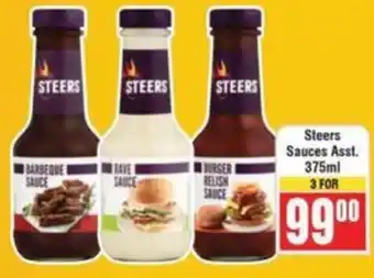 This special is available in various stores, view all products to get the cheapest Steers Sauces. If you'd like to find out whether this product has a bigger discount in another store, check the category 'Grocery stores'. You may also find these specials interesting: Steers sauces, STEERS Sauces Assorted & Jabba sauces.