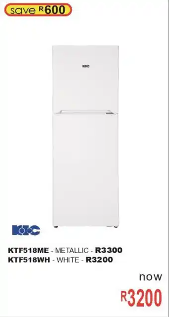 Furn 4 U offers a wide collection of products, besides the KIC White Double Door Fridge Freezer. Keep an eye on the weekly Furn 4 U catalogue to find the best specials and promotions. Besides KIC White Double Door Fridge Freezer, you can also find the following offers: KIC Fridge/ Freezer, KIC 170L White Top Freezer/Fridge KTF518-2WH 10283508 & KIC White Top-Freezer Fridge KTF518/2.