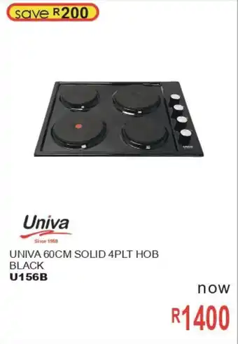 Furn 4 U offers a wide collection of products, besides the Univa solid 4 plate hob black. Keep an eye on the weekly Furn 4 U catalogue to find the best specials and promotions. Besides Univa solid 4 plate hob black, you can also find the following offers: Hisense 4-Solid Plate Hob, Univa 4 Plate Hob Stove B156 21-602 & Univa 4 Plate Oven Hob Set U336B 21-480.
