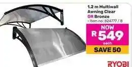 Now on special at Game: 1.2 m Multiwall Awning Clear OR Bronze ✅ Valid from 30-12 to 19-01.