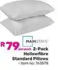This special is available in various stores, view all products to get the cheapest 2-Pack Hollowfibre Standard Pillows. If you'd like to find out whether this product has a bigger discount in another store, check the category 'Department Stores'. You may also find these specials interesting: Mainstays 2 Pack Hollowfibre Standard Pillows (763578)-Per Pack, Sleepmasters Hollowfibre Pillows & Kr standard.