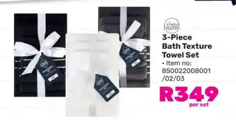 This 3-Piece Bath Texture Towel Set is currently available as part of a special promotion at Game. Be sure to check the current promotions filled with competitive prices and deals. You can order 3-Piece Bath Texture Towel Set online via Game website or get it at the best available price. Cataloguespecials.co.za collects the most relevant 3-Piece Bath Texture Towel Set offers and specials for you. Want to be notified first? Click the bell icon to receive a free alert when the product is part of a new promotion or available again.