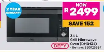 This special is available in various stores, view all products to get the cheapest 34 L Grill Microwave Oven (DMO134). If you'd like to find out whether this product has a bigger discount in another store, check the category 'Department Stores'. You may also find these specials interesting: Defy 34L Grill Microwave Oven DMO134 (850025839), DEFY 30 L Solo Model Microwave Oven (DMO 390) & Samsung 40 L Grill Electronic Microwave Oven (MG40DG5524AGFA).