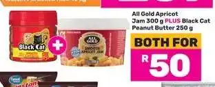 All Gold Apricot Jam 300 g PLUS Black Cat Peanut Butter 250 g promotion at Game