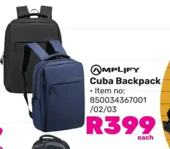 Game offers a wide collection of products, besides the Amplify Cuba Backpack. Keep an eye on the weekly Game catalogue to find the best specials and promotions. Besides Amplify Cuba Backpack, you can also find the following offers: Amplify Cuba Backpack 850034367001/02/03, Amplify Cuba Bus Shoulder Bag 850034476003 & Amplify Ingwe 15.6" Laptop Backpack.