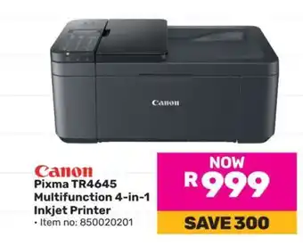 This special is available in various stores, view all products to get the cheapest Canon Pixma TR4645. If you'd like to find out whether this product has a bigger discount in another store, check the category 'Department Stores'. You may also find these specials interesting: Canon PIXMA TR4640/5 Printer, Canon Pixma TR4645 Multifunction 4-In-1 Printer 850020201 & Canon PIXMA TR4645 4-in-1 Inkjet Printer.