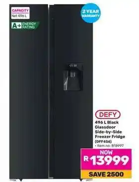 Now on special at Game: DEFY 496 L Black Glassdoor Side-by-Side Freezer Fridge (DFF456) ✅ Valid from 30-12 to 19-01.