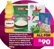 Econo Medium Grain Parboiled Rice 2Kg+Blended Cooking Oil 750ml+White Star Super Maize Meal 2.5Kg promotion at Game